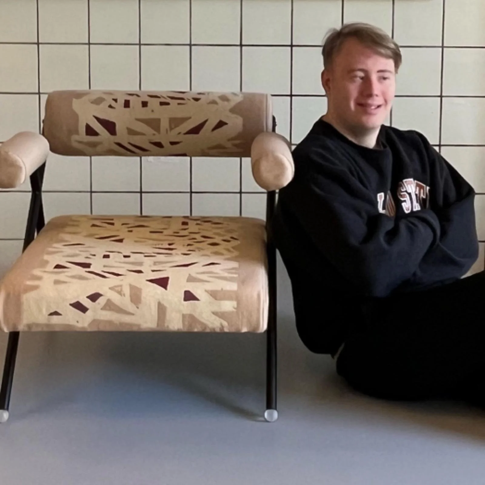 Bruin Parry x Nel - Bruin ontwierp de stof voor de Rolls Chair van interieurdesignmerk Nel.